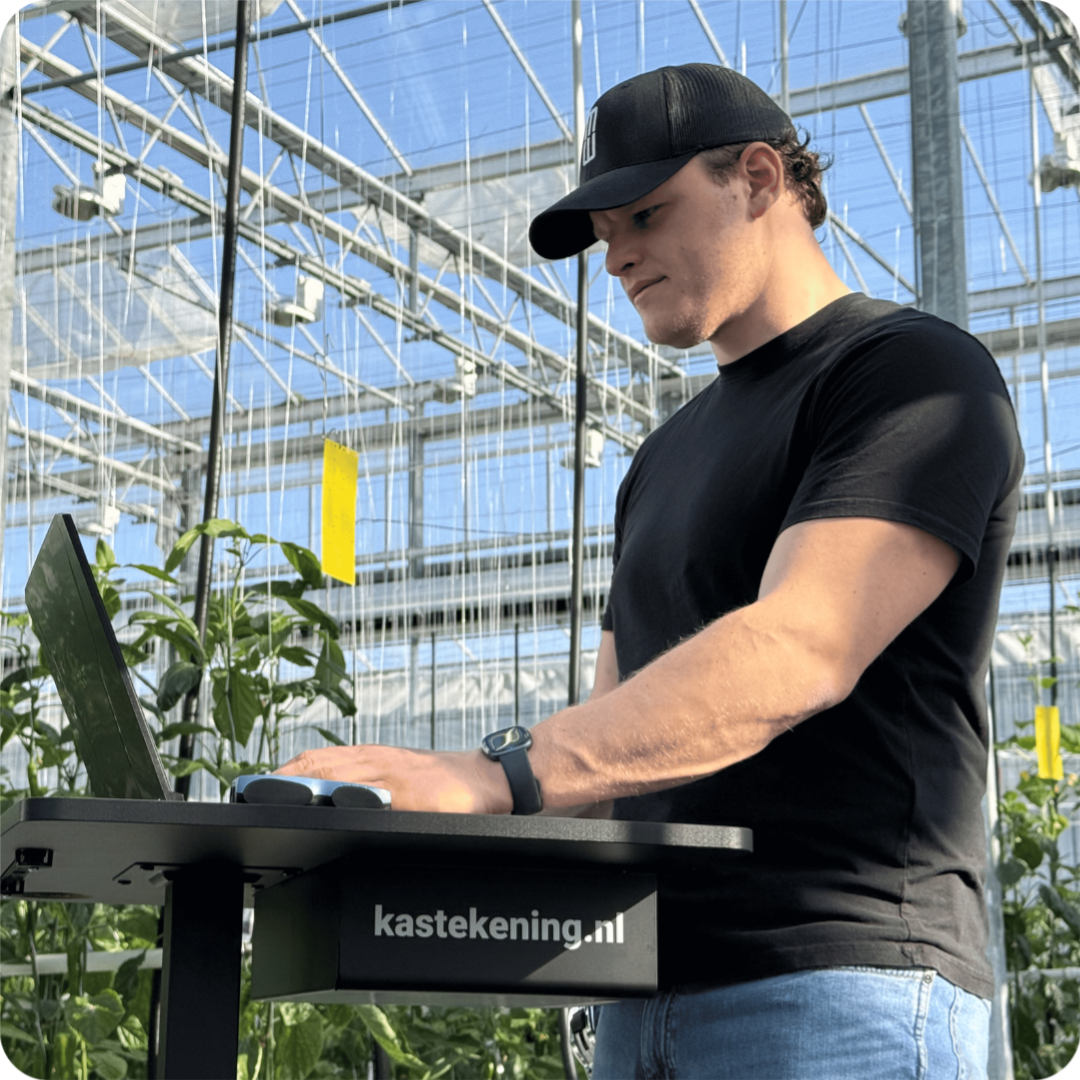 Ik ga naar de kas met een lasermeter en meet alles nauwkeurig op.